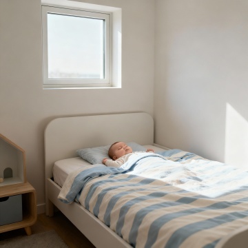 一张描绘年轻女性舒适睡眠场景的照片,女性侧身躺在床上,头枕在白色枕头,双臂环抱枕头,面容安详,闭着眼睛,嘴角带着微笑,穿着白色背心,盖着柔软的白色被子,卧室环境明亮,自然光透过白色窗帘洒入,床头有白色台灯,整体风格写实、温馨、宁静、明亮,色调以白色和浅色调为主,光线柔和自然,营造出舒适、放松、安逸的睡眠氛围,不同场景包括卧室的不同布置角度,装饰有简约的床头柜、柔和的灯光、不同质地的窗帘和床上用品,展现出多样化的睡眠背景。