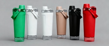 六个不同配色、不同样式、不同材质的水杯造型,采用上下两行对齐排列的布局,整体呈现出高分辨率的3D渲染效果,具有平滑细腻的质感和清晰的边缘轮廓,主色调为浅色系,搭配明亮柔和的光影效果,光源来自左上方,形成自然的高光和轻微的阴影,背景为纯净的浅色,突出水杯主体,每个水杯都有独特的设计细节,包括不同的杯身形状、杯盖样式、材质纹理和色彩搭配,整体构图简洁大方,视觉层次分明,营造出清新、现代的氛围。