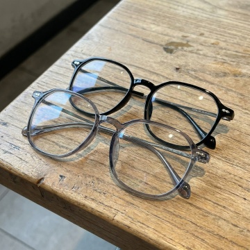 简约现代风格的眼镜产品展示图,白色纯色背景,中央规整排布单一元素——一副眼镜,眼镜为黑色镜框与银色金属镜架的组合设计,镜片透明,整体造型清晰、边缘锐利,无任何文字、logo或水印,光线均匀柔和,呈现出干净利落的产品质感。