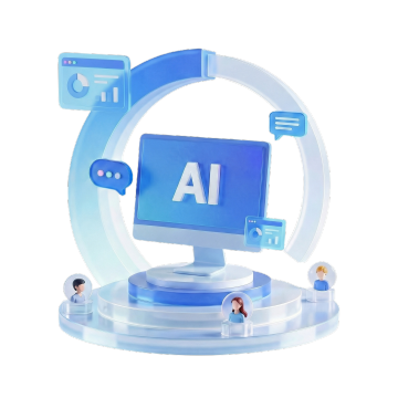科技感十足的3D重拟物风设计,融合霓虹灯与金属质感,展现未来AI教育场景,虚拟现实元素点缀,突出商务与创新氛围。