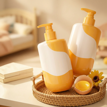 极简主义风格的产品摄影,四个不同样式的塑料按压瓶,每个瓶子拥有独特的配色(如淡粉、浅蓝、薄荷绿、鹅黄),瓶身设计略有差异(如不同弧度的瓶肩、或细微的线条装饰),均保持简约圆润的整体造型,白色纯色背景,瓶子以等间距整齐排列成一行,柔和的顶部柔光照明,清晰的瓶身高光与细腻阴影,光滑的塑料材质质感,高清晰度,产品展示感,干净利落的构图。