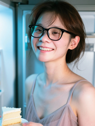 夜市霓虹下,少女轻咬串烧,胶片感光影晕染出东亚风的清新与柔和,实景中透出轻拟物的细腻质感,尽显都市夜宵的舒适诗意。