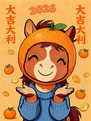 3D卡通马拟人化设计,融合刺绣风与毛发生长质感,国潮元素点缀“新年”浮雕字,喜庆祥和,传递春节祝福。