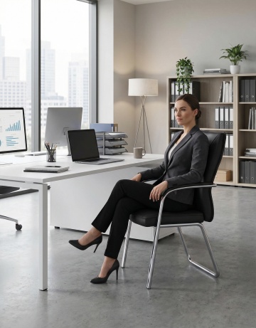 实景感与柔和光影交织,优雅女性身着亚麻衬衫与白色半裙,坐于深蓝绒椅,手持蓝气球,展现清新时尚与舒适质感,传递商务与生活美学的平衡。