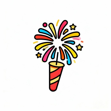 一套四个不同元素的系列素材集合,每个元素均采用扁平风格设计,线条简洁圆润,色彩鲜明饱和,规整排布于纯色背景上。第一个元素是生日蛋糕,绿色边框白色奶油,顶部插着红色带绿色条纹的点燃蜡烛,周围有黄色星星和彩色线条装饰;第二个元素是礼物盒,蓝色方形盒子配红色蝴蝶结,盒身有白色圆点图案,周围点缀橙色五角星和弧线;第三个元素是派对帽,黄色锥形帽顶有红色绒球,帽身有蓝色波浪条纹,周围环绕绿色圆点和短线;第四个元素是气球,粉色圆形气球系着紫色绳子,气球上有黄色笑脸,周围分布橙色螺旋线和蓝色小点。所有元素均保持一致的可爱卡通风格,表情生动,构图均衡,色彩搭配协调且每个元素整体色彩各不相同,形成系列感。