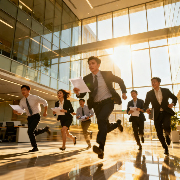 高清写实风格办公背景,温暖明亮的晨光从写字楼玻璃窗斜射而入,形成柔和的光晕与清晰的光影层次,画面主体为多只穿着正式西装(深蓝色、卡其色等商务着装)的手紧密交叠相握,展现团队协作与信任的氛围,人物姿态自然有力,背景虚化处理突出手部细节,整体色调以暖金色与商务蓝为主,营造专业、积极且充满活力的办公场景,适合作为企业宣传或团队建设主题的背景图。