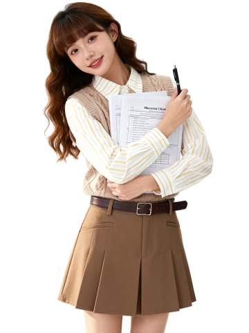 复古与文艺交织,优雅时尚中透出清新气息。东亚风秋景实景中,格纹裙与针织上衣碰撞面料质感,尽显秋天诗意美学。