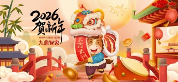 国潮风插画,剪纸窗格框景,工笔马跃山巅,水墨山水与鎏金祥云交织,红底喜庆,烟花点缀,尽显中式古典年味。