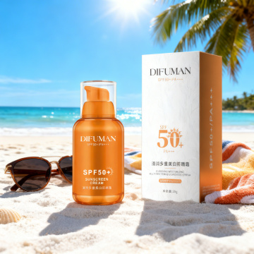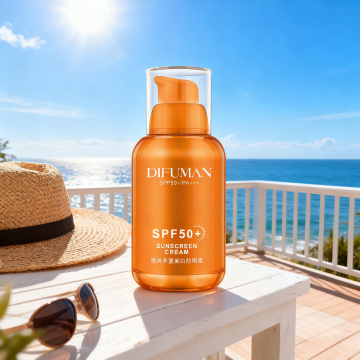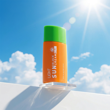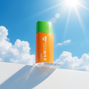 现代3D轻拟物风设计,金属质感瓶身,沙滩背景突显清爽夏日防晒创意。