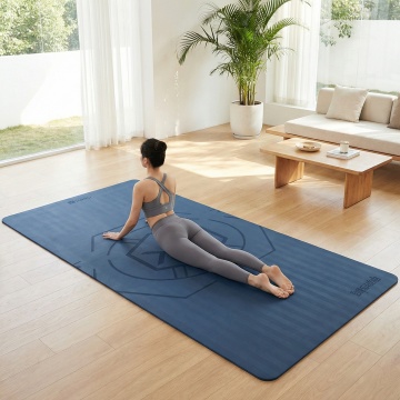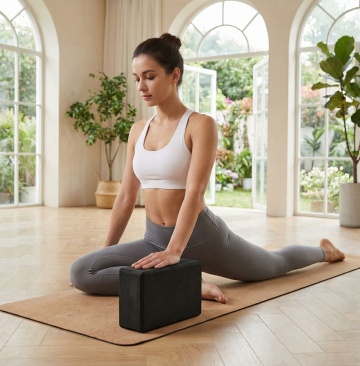 写实风格室内场景,明亮自然光从左侧窗户洒入,木质地板与浅灰色墙面形成温馨家居氛围,年轻女性扎着马尾辫,穿着白色背心和深灰色运动裤,正在做瑜伽鸽子式动作,身体侧俯,右腿弯曲膝盖着地,左腿向后伸直,双手撑地保持平衡,面带微笑,瑜伽垫上放着一台打开的笔记本电脑,背景有绿色植物、灰色布艺沙发和白色书架,整体色调柔和,光影过渡自然,画面构图采用三分法,人物位于中央偏右位置,营造出健康活力的居家运动场景。