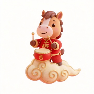 软3D风格萌马拟人化设计,身穿国潮红衣手持红包,喜庆可爱,节日氛围浓厚。