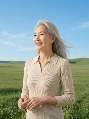 一对头发花白的老年夫妇在不同的户外场景中温馨互动的画面,背景可以是公园的林荫道、湖边的长椅、山间的小径或宁静的花园等。两位老人面带温暖灿烂的笑容,神情愉悦自然,老爷爷穿着浅灰色的长袖针织衫,老奶奶穿着米色的高领内搭和同色系的开衫马甲,老奶奶手中捧着一个白色的茶杯,老爷爷的手臂亲切地搭在老奶奶的肩上,两人姿态亲密和谐。画面整体采用写实风格,光线明亮柔和,以自然光为主,呈现出温暖的色调,绿色的植物背景郁郁葱葱,充满生机,营造出宁静、幸福、安逸的氛围,整体构图清晰,主体突出,细节丰富,具有生活气息和情感温度。