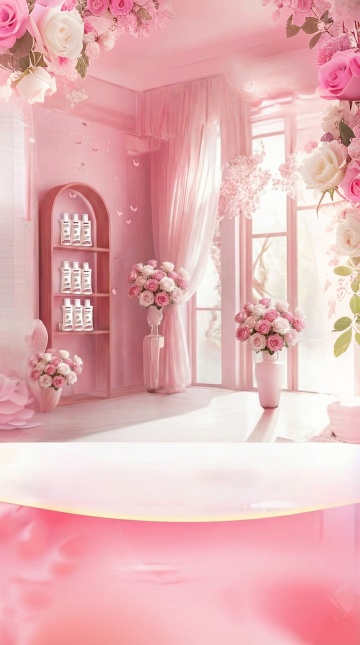 梦幻3D风,虚拟自然景观,超现实主义设计,液态花瓣环绕,营造浪漫氛围。