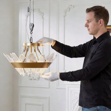 大理石肌理与金属点缀的轻拟物吊灯,融合古典宫廷艺术与现代3D混合材质风,光影柔和,质感奢华优雅。
