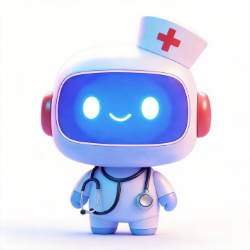 一个软萌的卡通机器人,整体采用柔和的蓝白色渐变3D设计,具有圆润的头部和身体轮廓,戴着大大的白色耳机,耳机外侧有粉色的发光圆环,方形的蓝色屏幕脸上有两个明亮的粉色圆形眼睛和一个微笑的弧线嘴巴,身体上有一个小小的粉色发光圆点,四肢短小可爱,呈现出友好招手的姿态,整体充满童趣和温馨感,光影柔和,边缘平滑,具有治愈系的可爱风格。