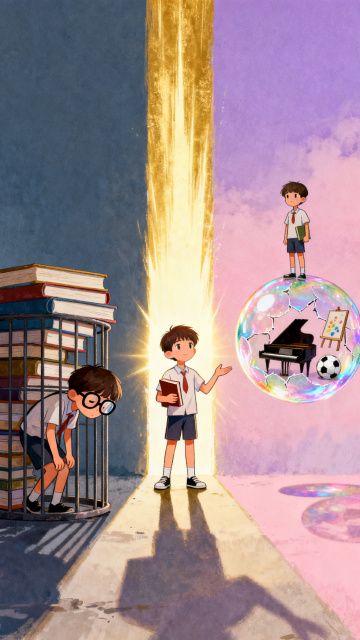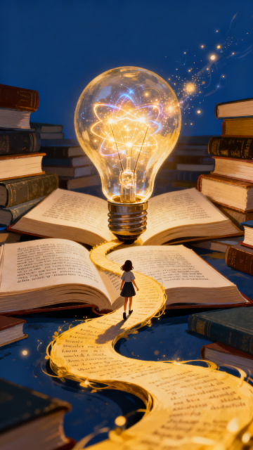中式古典与未来科技交融,3D超现实主义设计,金属鎏金风书桥,营造梦幻学习空间。