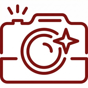 一个复古拍立得相机的插画,相机主体为黑白配色,机身呈方形,正面有一个大尺寸的圆形镜头,镜头边缘有黑色的齿轮状调节环,镜头玻璃呈现出光滑的反光质感,相机顶部有一个黑色的圆形快门按钮,机身正面上方有一个长方形的取景窗,整体造型简洁复古,采用平面插画风格,线条清晰流畅,色彩对比鲜明,白色背景,画面干净整洁,具有现代设计感。