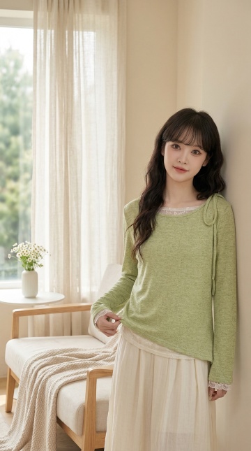 一位年轻亚洲女性的全身人像,人物正面站立,双手背在身后,姿态自然,表情平静。采用高清商业摄影风格,柔和均匀的正面光源,白色纯色背景,画面干净简洁,主体突出。人物展示完整,包括发型、面部表情、身形姿态。穿搭改为简约时尚风格:上身是一件浅灰色的宽松短款卫衣,搭配一条高腰深蓝色直筒牛仔裤,脚穿白色运动鞋,整体休闲舒适,符合日常穿搭展示需求。