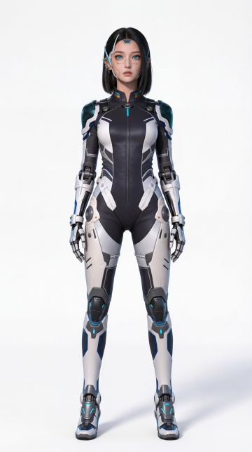 赛博朋克风3D角色,未来感科技金属设计,霓虹灯照亮夜景,展现冷酷与力量。