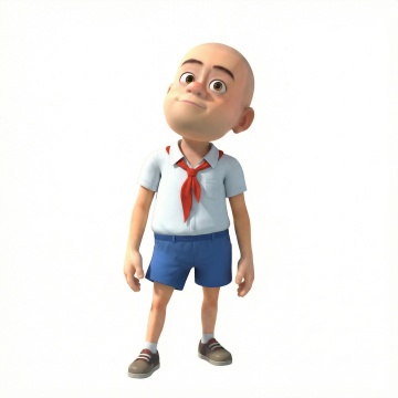 软3D风格卡通男孩,大眼萌趣,塑料质感肌理,动漫风设计,办公场景中佩戴耳机,可爱感十足。