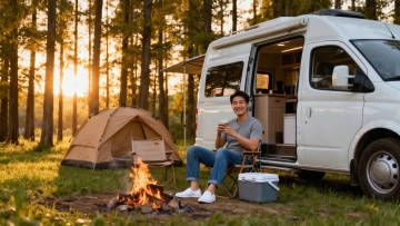 清新自然的湖畔露营场景,3D重拟物风格呈现真实质感,融合虚拟自然与印象画派光影,营造舒适惬意的户外生活氛围。