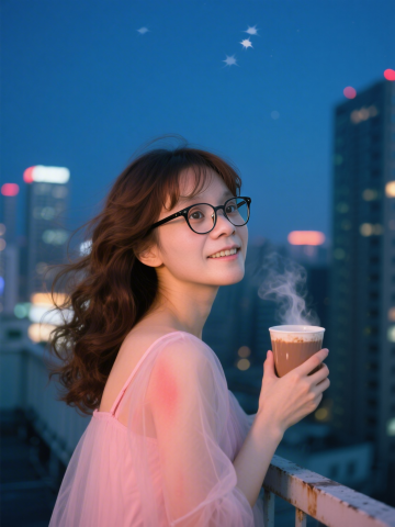 梦幻感与唯美交织,柔光晕染下的城市夜景,轻拟物风的星点点缀,水彩般的色彩过渡,胶片质感中透出文艺清新,光影柔和,实境与想象交融。