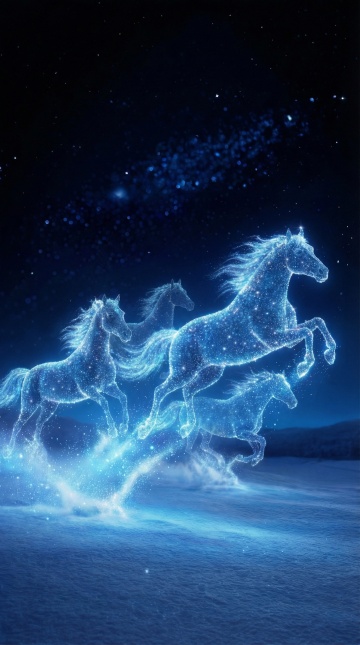 梦幻感与朦胧感交织的插画风鹿群,厚涂技法融合水彩晕染,双重曝光营造唯美感,文艺优雅中透出节日静谧氛围。