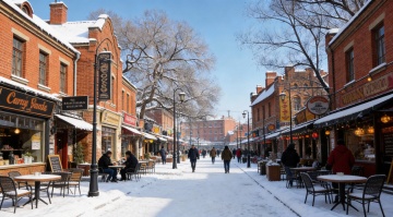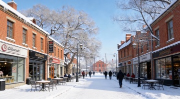 雪夜小镇,彩灯闪烁,圣诞树璀璨,孩童嬉戏,暖光映雪,节日氛围浓郁而温馨。