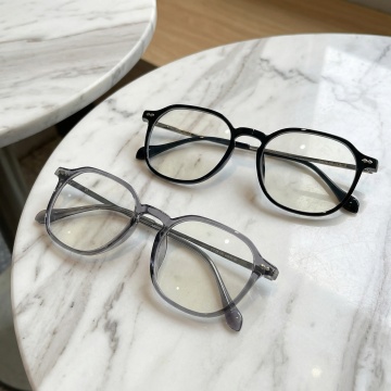 简约现代风格的眼镜产品展示图,白色纯色背景,中央规整排布单一元素——一副眼镜,眼镜为黑色镜框与银色金属镜架的组合设计,镜片透明,整体造型清晰、边缘锐利,无任何文字、logo或水印,光线均匀柔和,呈现出干净利落的产品质感。