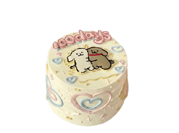 一个精致的圆形蛋糕,白色背景,蛋糕主体为淡紫色渐变奶油质地,表面覆盖着均匀的深紫色糖霜淋面,自然垂坠形成流畅的条纹,顶部边缘装饰着一圈螺旋状的白色奶油花,中央整齐摆放着7颗新鲜的蓝莓,蓝莓表面带有自然光泽和细小果蒂,蛋糕底部边缘有一圈精致的白色蕾丝状奶油花边,整体呈现出清新甜美的烘焙甜点风格,光影柔和,高光细腻,色彩过渡自然,具有高度写实的食物摄影质感。