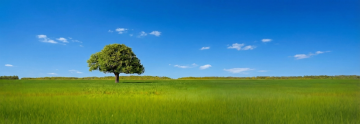 晨曦微露的天空下,一片生机盎然的绿色草坪,远处是茂密的深色松树林,阳光从林间斜射,在草坪上投下斑驳光影,营造出宁静而清新的氛围,草坪呈现出细腻的草叶质感和自然的波浪起伏形态。