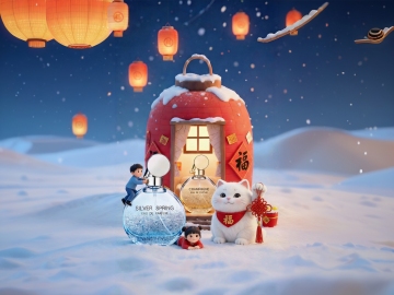 软3D风格插画,融合国潮元素与卡通感,雪夜烟花绽放,红灯笼高挂,孩童嬉戏屋檐,温馨喜庆的春节氛围扑面而来。