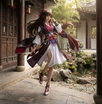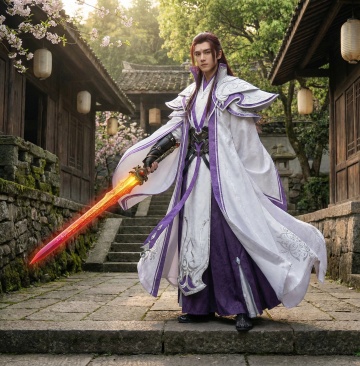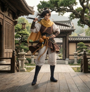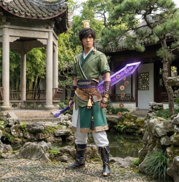 古典中式插画风,水墨山水背景,人物手持折扇,尽显雅致韵味。