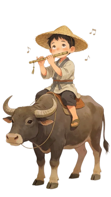 国潮风插画,卡通牛背负福娃,金元宝象征财富,喜庆氛围浓厚。