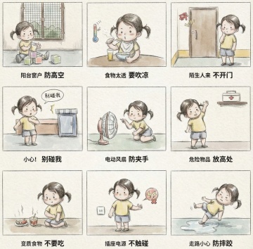 插画风漫画,水彩质感渲染温馨亲子时光,三格画面展现母子互动的可爱与梦幻,传递满心欢喜、慢慢长大、专属时光的节日温情。