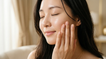超高清美妆人像摄影,极致清透白皙的皮肤质感,展现细腻毛孔与健康光泽,柔和自然光从斜上方照射形成立体光影,浅棕色发丝优雅挽起露出光洁额头与精致侧脸,模特以自然姿态轻触脸颊,眼神清澈望向镜头,整体色调以纯净白与柔和粉为主,营造高级感与纯净氛围,突出皮肤的水润通透与完美状态,极简背景凸显主体,构图聚焦面部特写,呈现专业美妆广告级别的细腻肤质与自然美感。