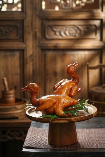 写实风中式美食,自然光下呈现质朴温暖感,光影交错间凸显鸭肉油润质感,舒适柔和的视觉体验。