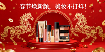 国潮风与鎏金风交织,重拟物设计呈现奢华感唇膏,粒子光效点缀喜庆氛围,中式福字挂饰呼应新年主题,尽显节日焕新之美。