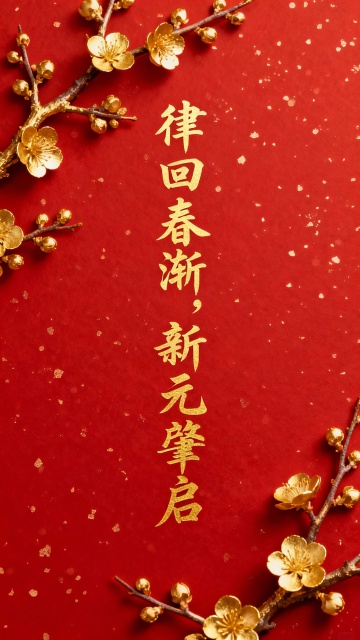 国潮风海报,融合剪纸与浮雕元素,以大字“春”为核心,搭配灯笼、梅花与电路纹汉服,鎏金线条勾勒喜庆氛围,传递中式民族节日祝福。