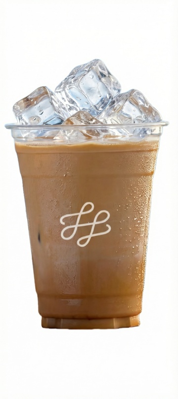 一张高清写实风格的奶茶饮品广告图,纯白色背景,透明塑料高杯装满奶茶,奶茶呈现深棕色,杯中漂浮着大量透明冰块和几片新鲜柠檬片,柠檬片边缘带有绿色果皮,杯壁上凝结着细密的水珠,光线从上方柔和照射,使奶茶表面泛着自然光泽,冰块和柠檬片的细节清晰可见,整体画面清新诱人,突出饮品的冰凉清爽质感。