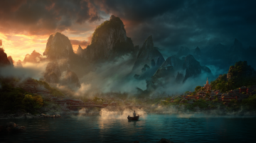 水墨风与插画风交融,云海缭绕山巅,光影流转间透出梦幻与神圣感,松柏苍劲,剑气如丝,唯美的虚拟自然画卷,静谧中蕴藏神秘东方意境。
