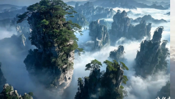 梦幻感中式风3D场景,唯美感水墨粒子交织,虚拟现实中的超现实飞剑仙踪,云海山峦间穿梭如画。