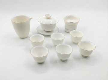 六个不同餐具以规整网格排列的系列素材集合,每个餐具均保持与原图一致的纯白色哑光陶瓷材质、柔和均匀的侧上方光源、清晰自然的高光与阴影过渡、简约写实风格,且在纯白背景上呈现——从左至右、从上至下分别为:边缘圆润的浅口圆盘、带手柄的马克杯、内壁光滑的深口汤碗、线条流畅的长方形容器、敞口高脚杯、以及带盖的圆形炖盅,所有餐具大小统一、间距均等,整体构图平衡对称,视觉上形成和谐统一的餐具系列展示。