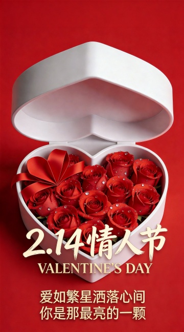 3D浮雕风玫瑰心形花束,鎏金丝带缠绕,搭配喜庆灯笼与花瓣飘落,浪漫唯美中透出新春喜庆,尽显优雅与节日氛围。