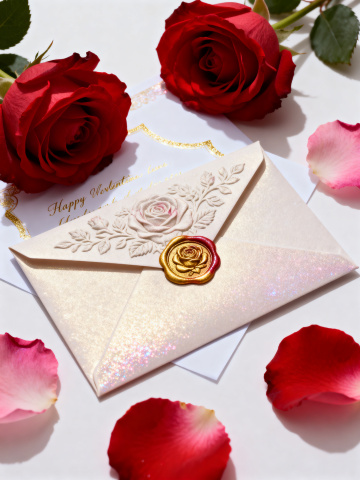 浪漫唯美,鎏金浮雕信封配玫瑰蜡封,刺绣风花纹点缀,欧洲宫廷艺术感十足,尽显情人节奢华优雅。