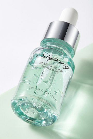 高质感化妆品广告摄影,透明玻璃滴管瓶身的精华液,瓶身带有水滴,放置于不同自然背景中(如森林苔藓、山间溪流、花园花丛等),周围点缀相关天然成分元素,柔和的侧逆光营造梦幻光晕,水面倒映波光粼粼,整体色调以清新自然的绿色系为主,光影层次丰富,细节清晰,呈现纯净、天然、高端的护肤产品形象,具有杂志级别的视觉质感和氛围。