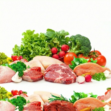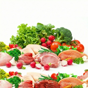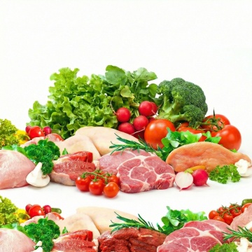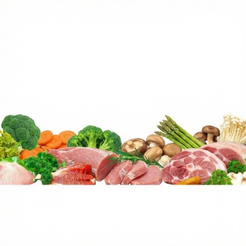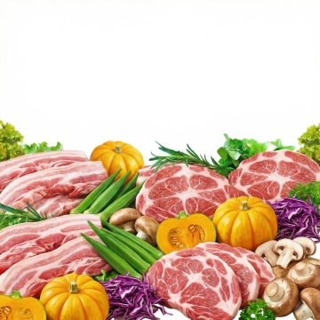一系列6个完全不同的生鲜肉类元素集合,每个元素均为高分辨率摄影风格,展现不同种类的优质生肉(如牛排、羊排、鸡腿肉、三文鱼排、猪里脊、虾),肉质纹理清晰,色泽鲜亮自然,表面带有新鲜的光泽和少量自然血水,点缀以绿色香草枝叶(如迷迭香、百里香),统一置于纯白色纯色背景上,元素之间排布规整,保持一致的间距和视觉平衡,整体构图简洁干净,突出食材的新鲜感和品质感,适合作为生鲜食品电商或超市的系列素材集合。