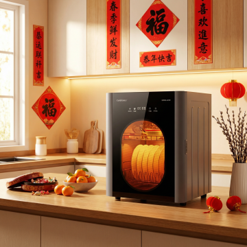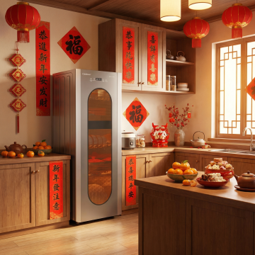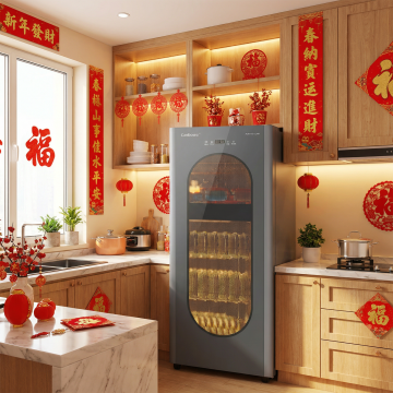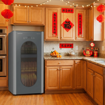 现代感与科技感融合的3D微缩艺术风冰箱,玻璃门内陈列家电,简约主义设计,11.11促销季主题贴纸点睛。