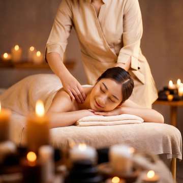 轻拟物风融合油画质感,柔和光影勾勒温馨按摩场景,实景感十足,传递舒适疗愈氛围。