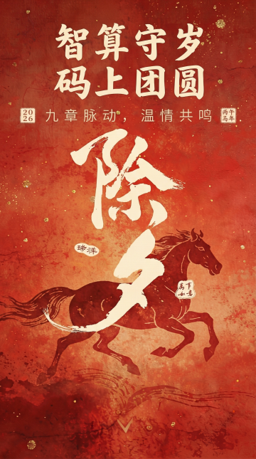 鎏金骏马腾云跃,国潮插画风融合古典纹饰,光影流动间尽显喜庆与梦幻,马年新春贺岁氛围浓烈。
